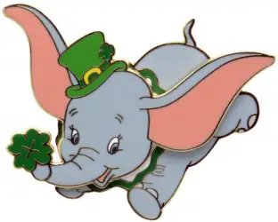 2014 - Dumbo and Clover (SURPRISE) is a Limited Edition (LE) 400 pin from the St. Patrick's Day pin series. It was originally released on , 2014 and was available from Disney Studio Store Hollywood / Soda Fountain .