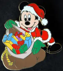 Santa Mickey with a Bag of Presents is an Open Edition pin from the Holiday Pin Collection pin series. It was originally released on , 2005 and was available from Multiple Sources (WDW, DLR, etc.).