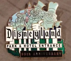 Hitchhiking Ghosts is a Limited Edition (LE) 300 pin from the Disneyland 55th Anniversary pin series. It was originally released on , 2010 and was available from Multiple Sources (WDW, DLR, etc.).