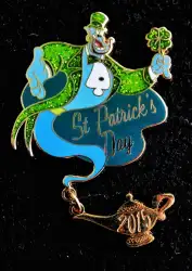 2015 - Genie is a Limited Edition (LE) 700 pin from the St. Patrick's Day pin series. It was originally released on , 2015 and was available from Disneyland Resort Paris .
