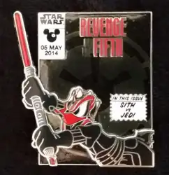 2014 - Darth Maul Donald Magazine is a Limited Edition (LE) 2500 pin from the Revenge of the Fifth pin series. It was originally released on , 2014 and was available from Multiple Sources (WDW, DLR, etc.).