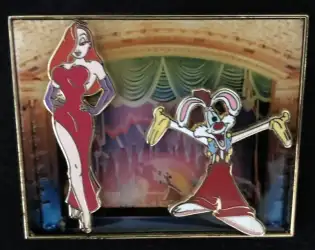Jessica & Roger Rabbit is a Limited Edition (LE) 300 pin from the El Capitan Theatre Stage pin series. It was originally released on , 2010 and was available from Disney Studio Store Hollywood / Soda Fountain .