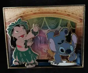Lilo & Stitch is a Limited Edition (LE) 300 pin from the El Capitan Theatre Stage pin series. It was originally released on , 2010 and was available from Disney Studio Store Hollywood / Soda Fountain .