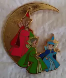 Merriweather, Fauna and Flora is a Limited Edition (LE) 300 pin from the Crescent Moons pin series. It was originally released on , 2018 and was available from Disney Studio Store Hollywood / Soda Fountain .