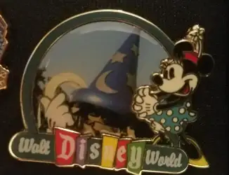 Pin features Minnie Mouse