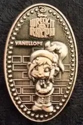 Wreck-It Ralph - Vanellope is a Limited Edition (LE) 250 pin from the Pressed Pennies Series pin series. It was originally released on , 2013 and was available from Walt Disney Imagineering .