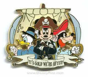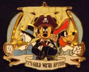 It's Gold We're After is an Open Edition pin from the Pirates of the Caribbean - Legend of the Golden Pins pin series. It was originally released on , 2006 and was available from Disneyland Resort Paris .