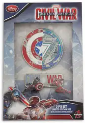 Captain America: Civil War Limited Edition Pin Set is a Limited Edition (LE) 800 2-pin set from the Captain America Civil War pin series. It was originally released on , 2016 and was available from Disney Store US .