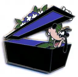 Goofy in Coffin is a Limited Release pin from the Haunted Mansion GWP Map pin series. It was originally released on , 2009 and was available from Disneyland Resort .