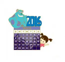 Monster's Inc. (Surprise Release) is a Limited Edition (LE) 300 pin from the 2016 PIXAR Calendar pin series. It was originally released on , 2016 and was available from Disney Studio Store Hollywood / Soda Fountain .