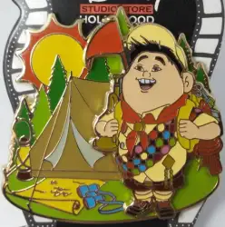 Russell Camping is a Limited Edition (LE) 400 pin from the DSSH Summer Outdoors Collection pin series. It was originally released on , 2014 and was available from Disney Studio Store Hollywood / Soda Fountain .