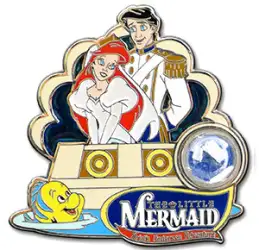Pin features Ariel , Flounder and Prince Eric from The Little Mermaid