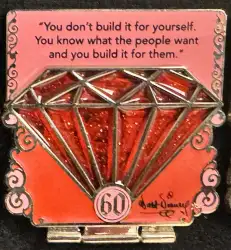 Walt Disney - Anniversary - Red - Quote is a Limited Edition (LE) 3000 pin from the Disneyland 60th Celebration Diamond Countdown pin series. It was originally released on , 2015 and was available from Disneyland Resort .