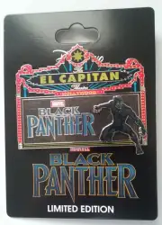 Black Panther is a Limited Edition (LE) 400 pin from the El Capitan Marquee Series pin series. It was originally released on , 2018 and was available from Disney Studio Store Hollywood / Soda Fountain .