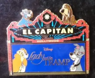 Lady and the Tramp is a Limited Edition (LE) 300 pin from the El Capitan Marquee Series pin series. It was originally released on , 2015 and was available from Disney Studio Store Hollywood / Soda Fountain .