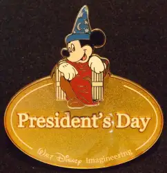 President's Day is a Limited Edition (LE) 300 pin from the Name Tag Series - Mickey Mouse as Sorcerer's Apprentice pin series. It was originally released on , 2009 and was available from Walt Disney Imagineering .