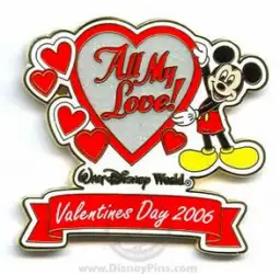 All My Love! is a Limited Edition (LE) 1500 pin from the Valentine's Day 2006 - To My Valentine pin series. It was originally released on , 2006 and was available from Walt Disney World .