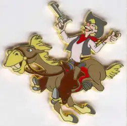 Pecos Bill is a Limited Edition (LE) 50 pin in the Western Love Story 6-pin set 6-pin set from the Chip & Dale’s Wild Wild West Pin Adventure pin series. It was originally released on , 2005 and was available from Disneyland Resort .