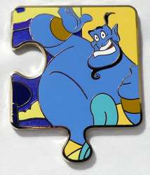 Genie is a Limited Edition (LE) 1100 pin from the Character Connection Mystery Collection - Aladdin Puzzle pin series. It was originally released on , 2017 and was available from Multiple Sources (WDW, DLR, etc.).