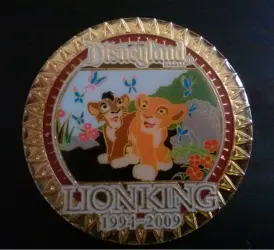Lion King 15th Anniversary (Kiara and Kovu) is a Limited Edition (LE) 800 pin from the The Lion King 15th Anniversary Disney pin series. It was originally released on , 2009 and was available from Disneyland Resort .