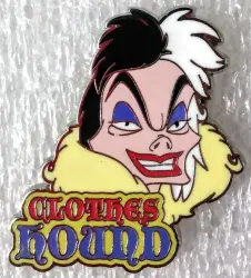 Cruella de Vil - Clothes Hound is an Open Edition pin from the Villain Attributes Mystery Collection pin series. It was originally released on , 2015 and was available from Multiple Sources (WDW, DLR, etc.).