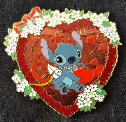 Stitch is a Limited Edition (LE) 100 pin from the A Disney Valentine Set pin series. It was originally released in February, 2010 and was available from Disney Store US .