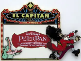 Peter Pan #1 Captain Hook and Tick-Tock is a Limited Edition (LE) 300 pin from the El Capitan Marquee Series pin series. It was originally released in February, 2007 and was available from Disney Studio Store Hollywood / Soda Fountain .
