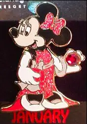 January is an Open Edition pin from the Formal Birthstone Minnie Mouse pin series. It was originally released in February, 2001 and was available from Disneyland Resort .