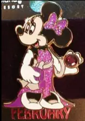 February is an Open Edition pin from the Formal Birthstone Minnie Mouse pin series. It was originally released in February, 2001 and was available from Disneyland Resort .
