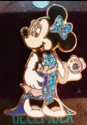 December is an Open Edition pin from the Formal Birthstone Minnie Mouse pin series. It was originally released in February, 2001 and was available from Disneyland Resort .