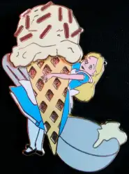 Alice is a Limited Edition (LE) 300 pin from the Mad Ice Cream Party pin series. It was available from Disney Studio Store Hollywood / Soda Fountain .