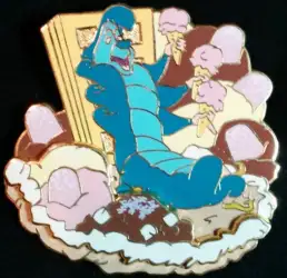 Caterpillar is a Limited Edition (LE) 300 pin from the Mad Ice Cream Party pin series. It was originally released on , 2010 and was available from Disney Studio Store Hollywood / Soda Fountain .