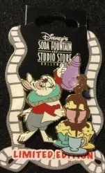 White Rabbit is a Limited Edition (LE) 300 pin from the Mad Ice Cream Party pin series. It was originally released on , 2010 and was available from Disney Studio Store Hollywood / Soda Fountain .