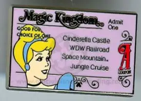 Cinderella - A Ticket - Magic Kingdom Park is a Limited Edition (LE) 1000 pin from the Cast Pin Parties - Ticket Book Series pin series. It was originally released on , 2005 and was available from Walt Disney World .
