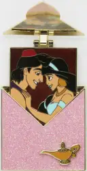 Aladdin & Jasmine is a Limited Edition (LE) 400 pin from the St. Valentine's Letter Series pin series. It was originally released on , 2014 and was available from Disney Studio Store Hollywood / Soda Fountain .