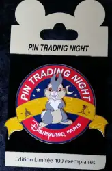 Thumper is a Limited Edition (LE) 400 pin from the Pin Trading Night pin series. It was originally released on , 2013 and was available from Disneyland Resort Paris .