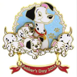 2014 - Pongo with Puppies Dangle is a Limited Edition (LE) 2500 pin from the Father's Day pin series. It was originally released on , 2014 and was available from Multiple Sources (WDW, DLR, etc.).