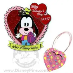 Goofy is a Limited Edition (LE) 1500 pin from the Happy Valentine's Day 2007 - Cute Characters pin series. It was originally released on , 2007 and was available from Walt Disney World .