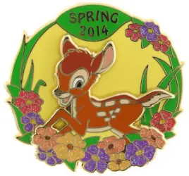 2014 - Bambi is a Limited Edition (LE) 2000 pin from the Disney Parks Seasons - Spring pin series. It was originally released on , 2014 and was available from Multiple Sources (WDW, DLR, etc.).