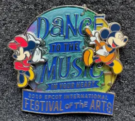 Dance to the Music is a Limited Edition (LE) 2000 pin from the EPCOT International Festival of the Arts 2019 pin series. It was originally released on , 2019 and was available from Walt Disney World .