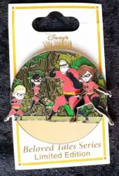 The Incredibles is a Limited Edition (LE) 300 pin from the Beloved Tales Series pin series. It was originally released on , 2015 and was available from Disney Studio Store Hollywood / Soda Fountain .
