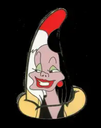 Cruella De Vil is a Limited Edition (LE) 200 pin from the Sorcerer Hats Mystery Pin Collection - Villains pin series. It was originally released on , 2012 and was available from Walt Disney Imagineering .