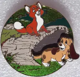 Fox and the Hound is a Limited Edition (LE) 300 pin from the Beloved Tales Series pin series. It was originally released on , 2012 and was available from Disney Studio Store Hollywood / Soda Fountain .