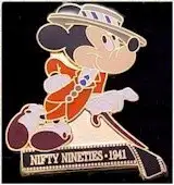 1941 - Nifty Nineties is a Limited Edition (LE) 1200 pin from the Mickey Through the Years Filmstrip Series pin series. It was originally released on , 1999 and was available from Walt Disney World .