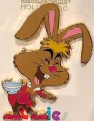 The March Hare is a Limited Edition (LE) 300 pin from the Alice in Wonderland Cuties Collection pin series. It was originally released on , 2019 and was available from Disney Studio Store Hollywood / Soda Fountain .
