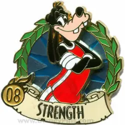 Goofy Strength is an Open Edition pin from the Summer of Champions pin series. It was originally released on , 2008 and was available from Multiple Sources (WDW, DLR, etc.).
