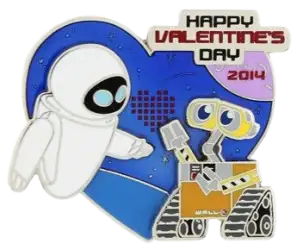 2014 - Wall-E and Eve is a Limited Edition (LE) 5000 pin from the Valentine's Day pin series. It was originally released on , 2014 and was available from Multiple Sources (WDW, DLR, etc.).