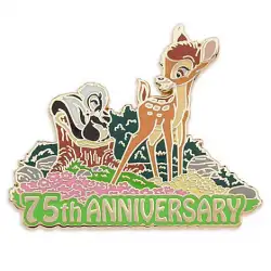 Bambi and Flower is a Limited Edition (LE) 800 pin from the Bambi 75th Anniversary pin series. It was originally released on , 2017 and was available from Multiple Sources (WDW, DLR, etc.).