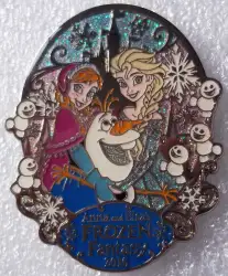 Pin features Elsa , Olaf and Anna from Frozen
