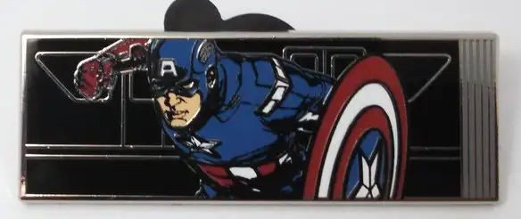 Captain America is a Limited Release pin from the Avengers Monorail Mystery Collection pin series. It was originally released on , 2014 and was available from Walt Disney World .